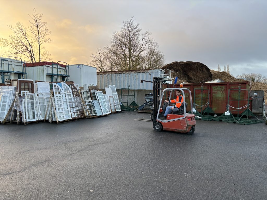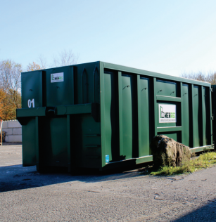 Des bennes de 30m3 avec une capacité jusqu’à 130 menuiseries soit 5 à 6 tonnes de matières.