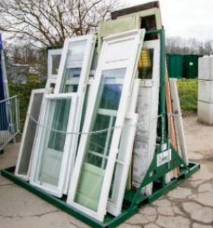 Des racks compacts, faciles à remplir, équivalents à une benne 10m3 (jusqu’à 30 menuiseries vitrées).
